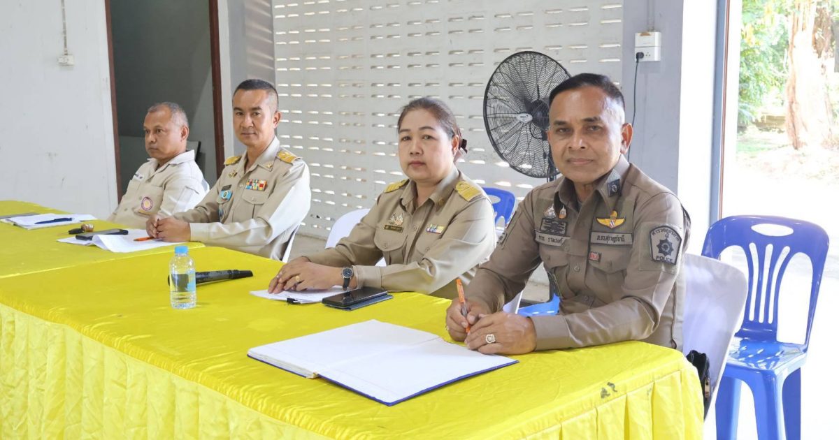 พ.ต.ท.ถาวร รามวงศ์ รอง ผกก.ป.สภ.บ้านตาขุน รรท.ผกก.สภ.บ้านตาขุน ร่วมประชุม กำนัน ผู้ใหญ่บ้าน แพทย์ประจำตำบล สารวัตรกำนัน และผู้ช่วยผู้ใหญ่บ้าน ประจำเดือน ก.ย.2568