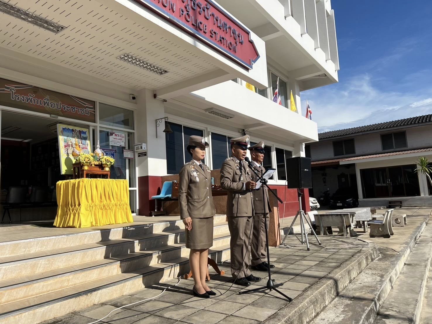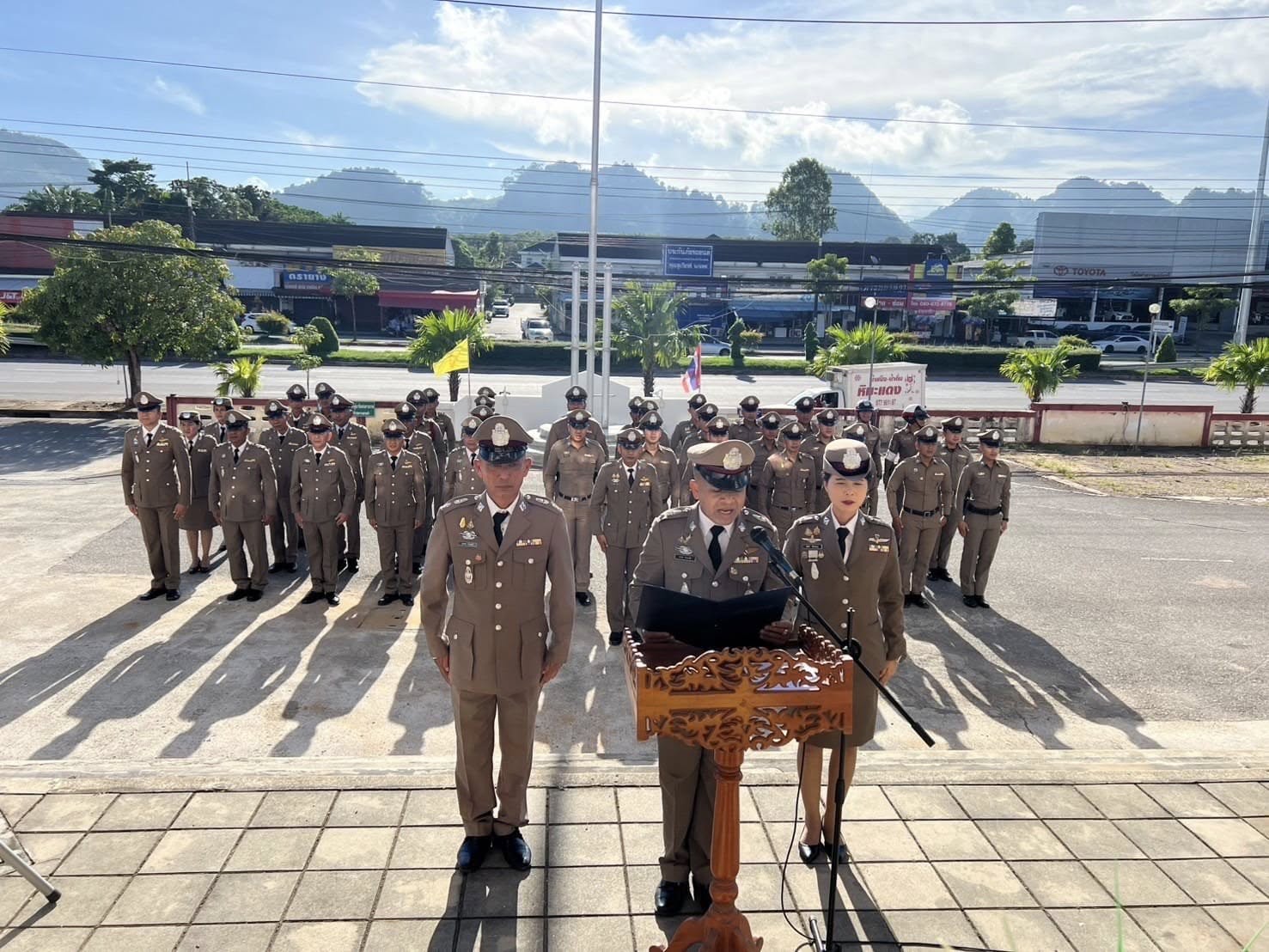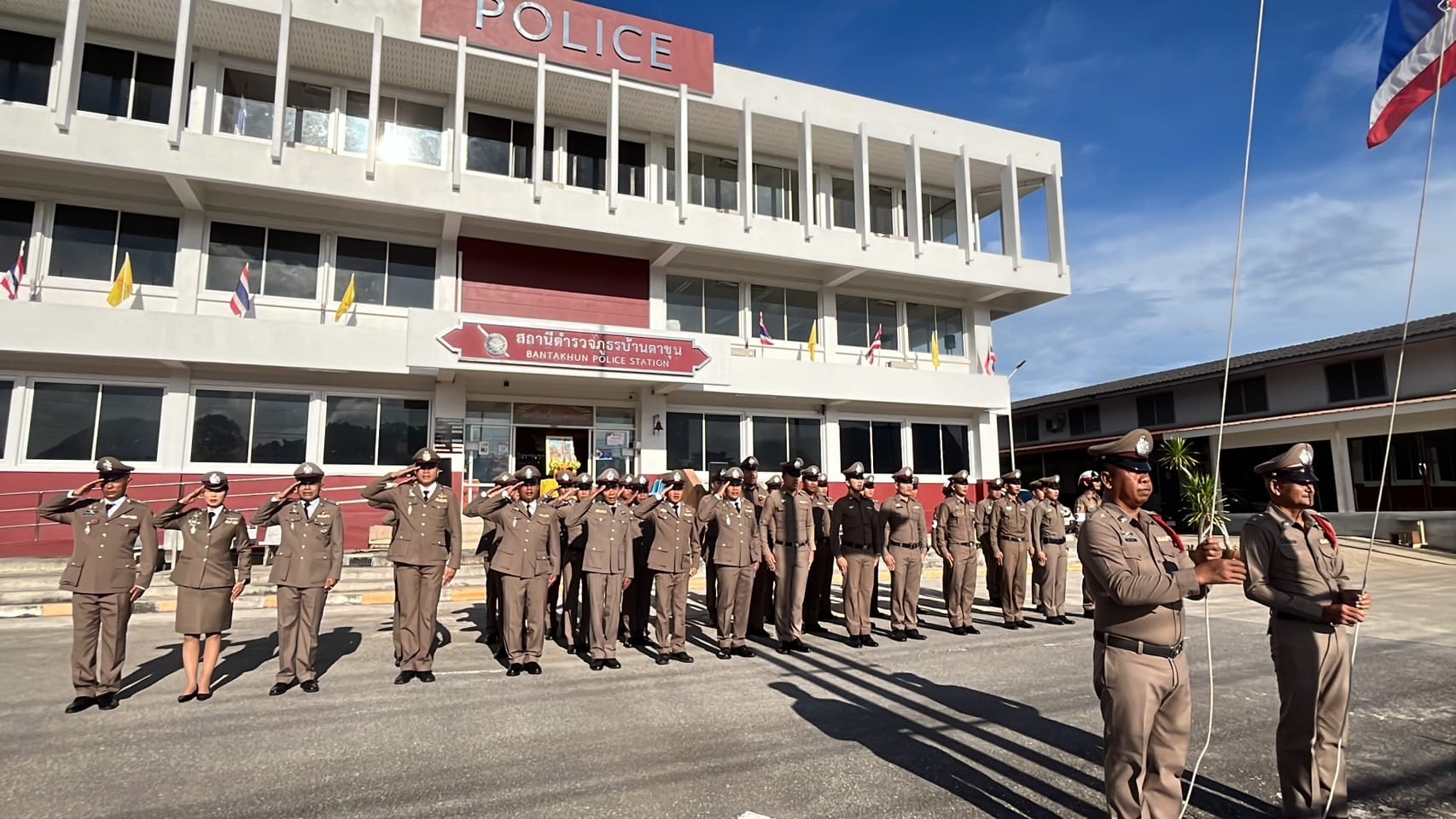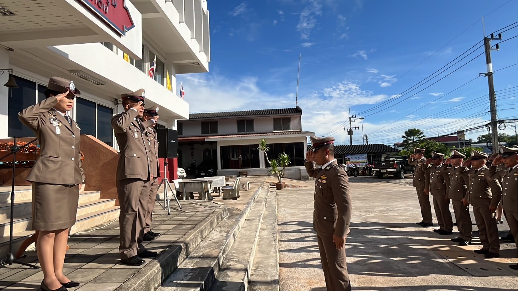 • เวลา 08.00 น. เข้าแถวเคารพธงชาติ กล่าวคำสัตย์ปฏิญาณ ท่องอุดมคติตำรวจ อ่านสาร ผบ.ตร. และให้โอวาทแก่ข้าราชการตำรวจ