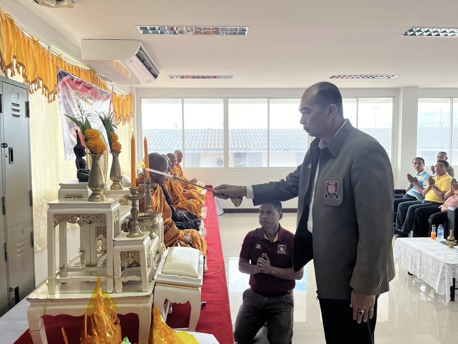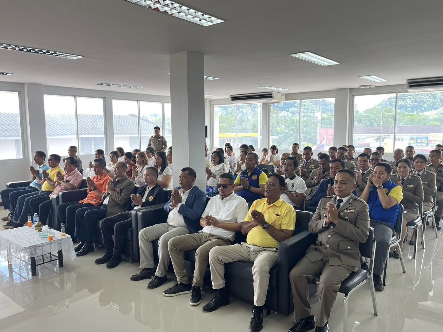 • เวลา 09.30 น. เข้าร่วมพิธีสงฆ์ โดยมีนายวีรยุทธ ขนุนนิล นายอำเภอบ้านตาขุน ,ปลัดอำเภอ,ประธาน กต.ตร.สภ.ฯ,ผู้นำท้องถิ่น,คณะแม่บ้านตำรวจ ฯลฯ ให้เกียรติมาร่วมพิธีฯ ณ ที่ทำการ สภ.บ้านตาขุน
