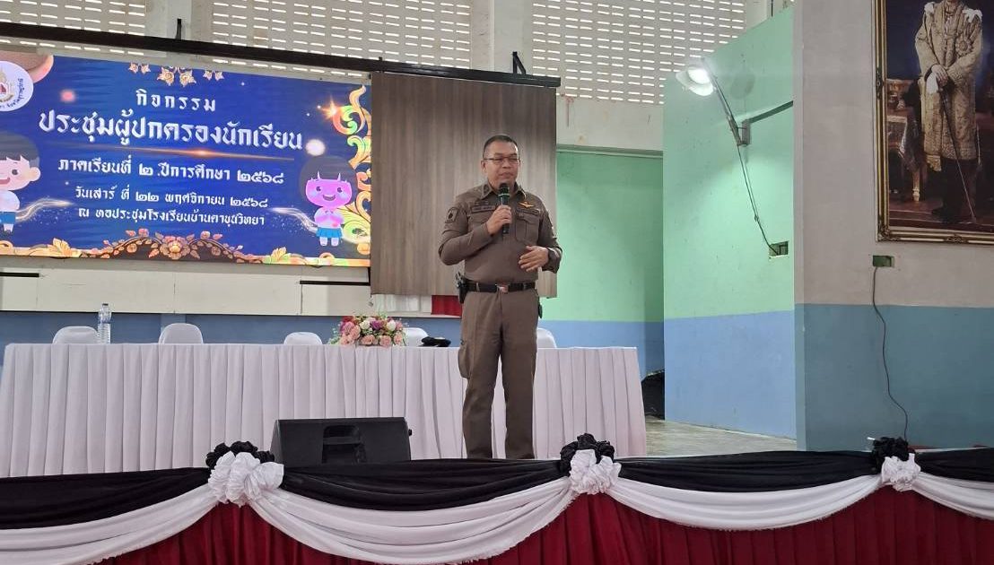 พ.ต.อ.กฤดินิธิ ทองทิพย์ รอง ผบก.ฯ รรท.ผกก. สภ.บ้านตาขุน ร่วมประชุมผู้ปกครองชัันเรียน ณ โรงเรียนบ้านตาขุนวิทยา ให้ความรู้เกี่ยวกับกฏหมายจราจร