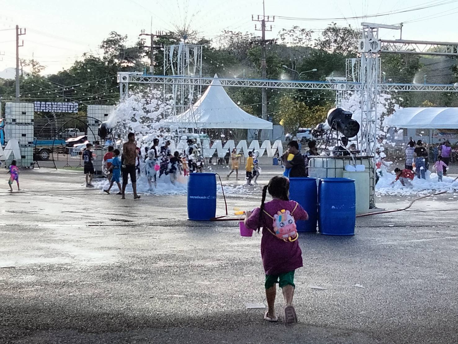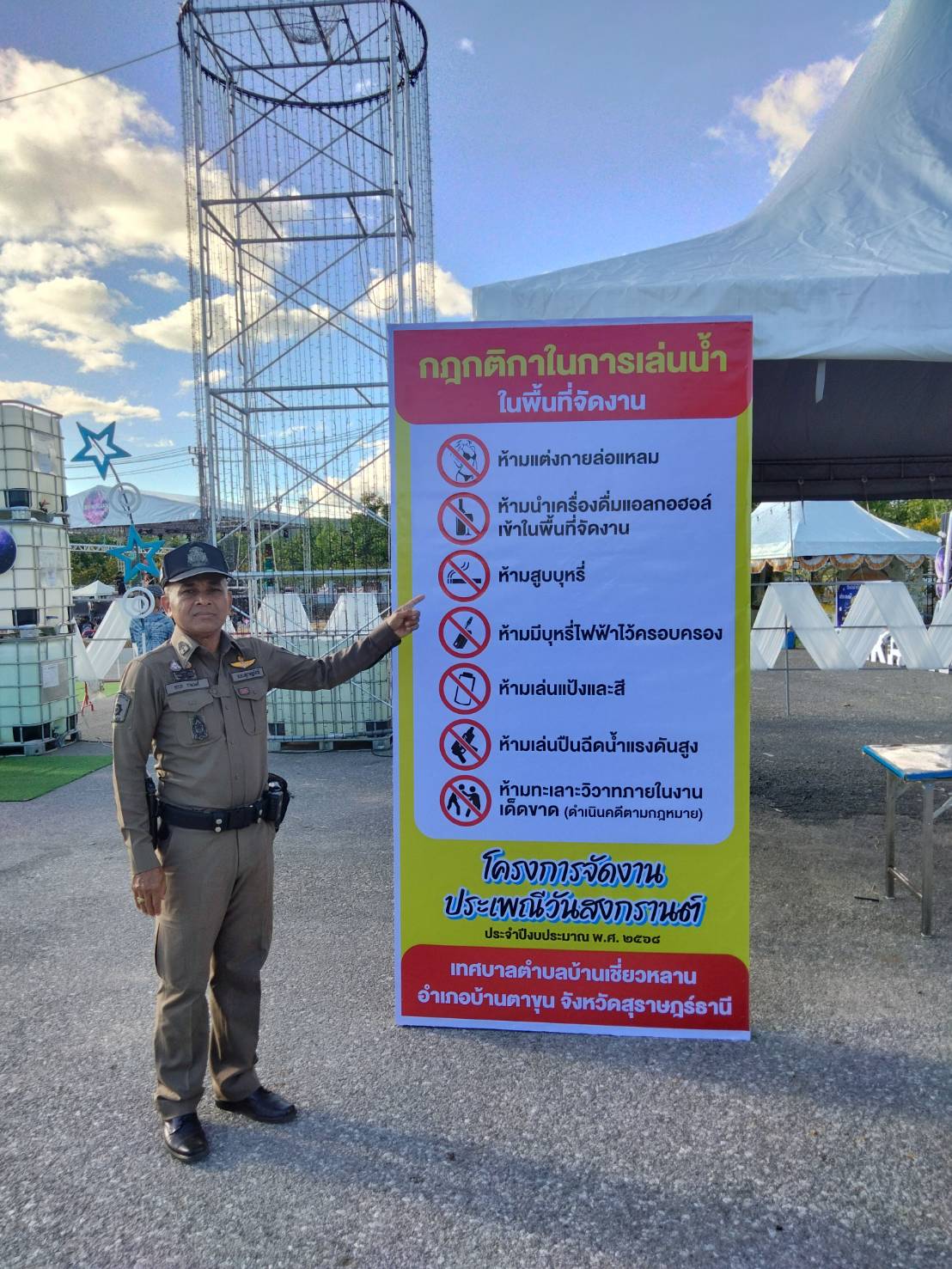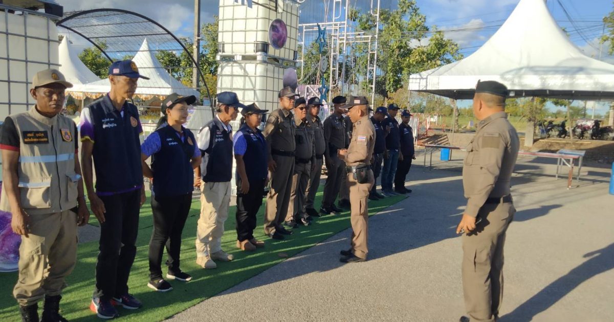 พ.ต.อ.พยงศักดิ์ เพชรรอบ ผกก.ฯ, พ.ต.ท.ถาวร รามวงศ์ รอง ผกก.ป.ฯ ปล่อยแถวเจ้าหน้าที่ดูแลความเรียบร้อยและอำนวยความสะดวกแก่ประชาชนในงานประเพณีสงกรานต์@เชี่ยวหลาน