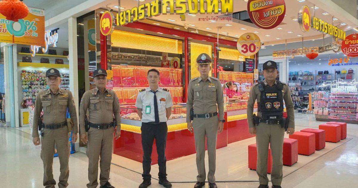 พ.ต.อ.อานุภาพ จันดิถวงค์ ผกก.สภ.บ้านตาขุน พ.ต.ท.ถาวร รามวงศ์ รอง ผกก.ป.ฯ พ.ต.ต.วุฒิดนัย พืชผล สวป.ฯ พร้อมชุดสายตรวจรถยนต์ ออกตรวจพื้นที่ร้านทองจุดเสี่ยงในพื้นที่รับผิดชอบ