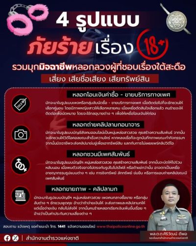 สำนักงานตำรวจแห่งชาติเตือนสายใต้สะดือ ต้องระวัง 4 ภัยมิจฉาชีพ ที่พุ่งเป้ามาที่คุณ