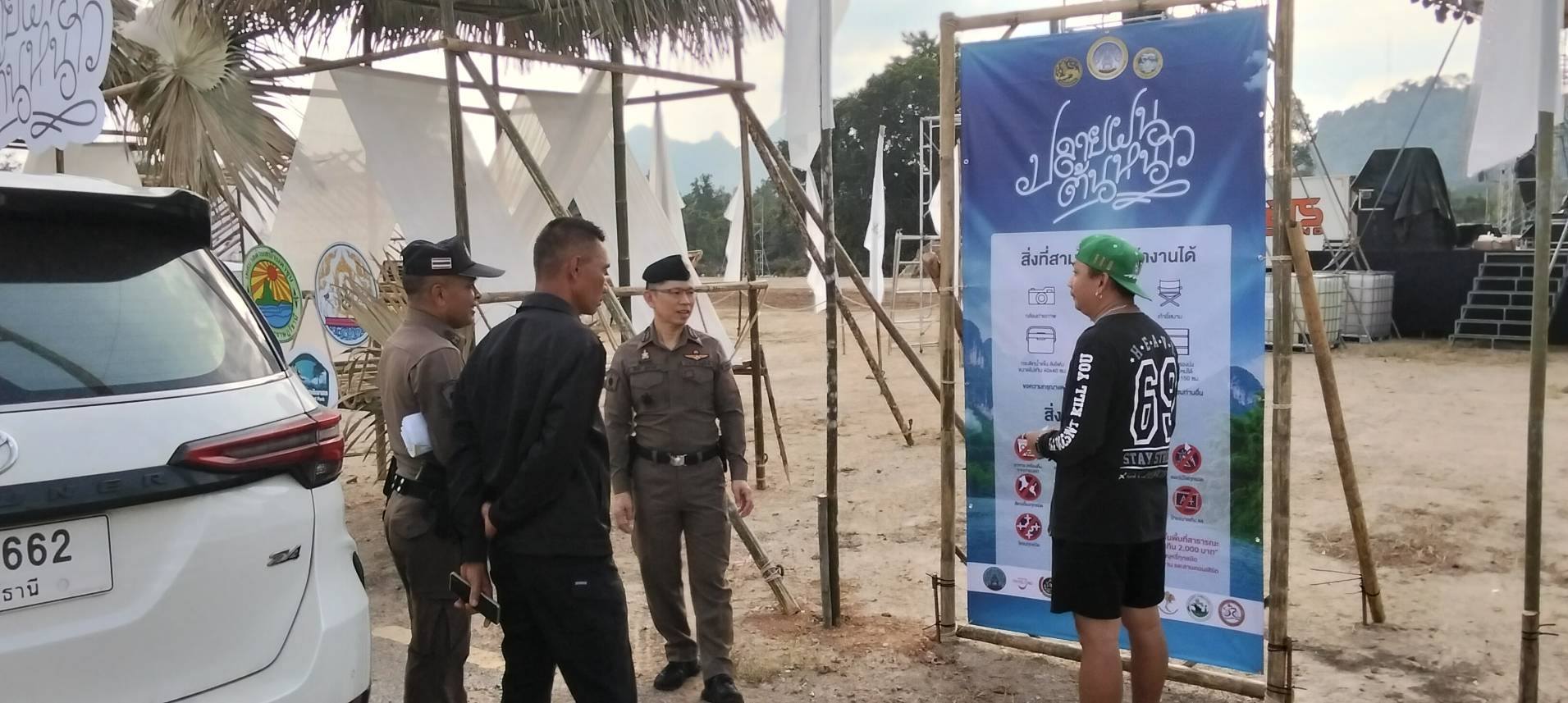 พ.ต.อ.ศิริชัย สุขสาตต์ รอง ผบก.ฯ รรท.ผกก.สภ. บ้านตาขุน, พ.ต.ท.ถาวร รามวงศ์ รอง ผกก.ป.ฯ ออกตรวจสถานที่บริเวณจัดงานปลายฝนต้นหนาว ตามจุดต่างๆเพื่อความเรียบร้อยของงาน