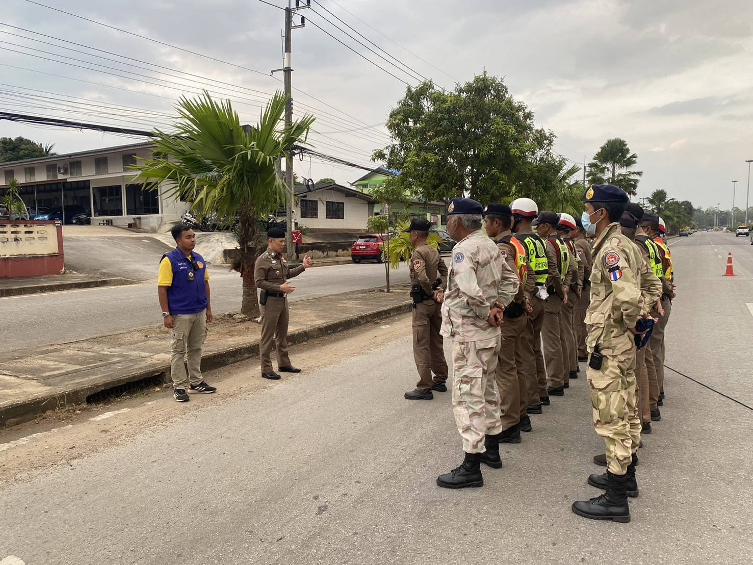 พ.ต.อ.ศิริชัย สุขสาตต์ รอง ผบก.ภ.จว.สฎ.รรท.ผกก. สภ.บ้านตาขุน, พ.ต.ท.ถาวร รามวงศ์ รองผกก.ป.ฯ, พ.ต.ท.สุเทพ ร่างมณี รอง ผกก.สอบสวน.ฯ ร่วมปล่อยแถวชุด ชป.สภ.บ้านตาขุน และฝ่ายปกครอง ในการตั้งจุดตรวจบูรณาการร่วมหน้า สภ.บ้านตาขุน