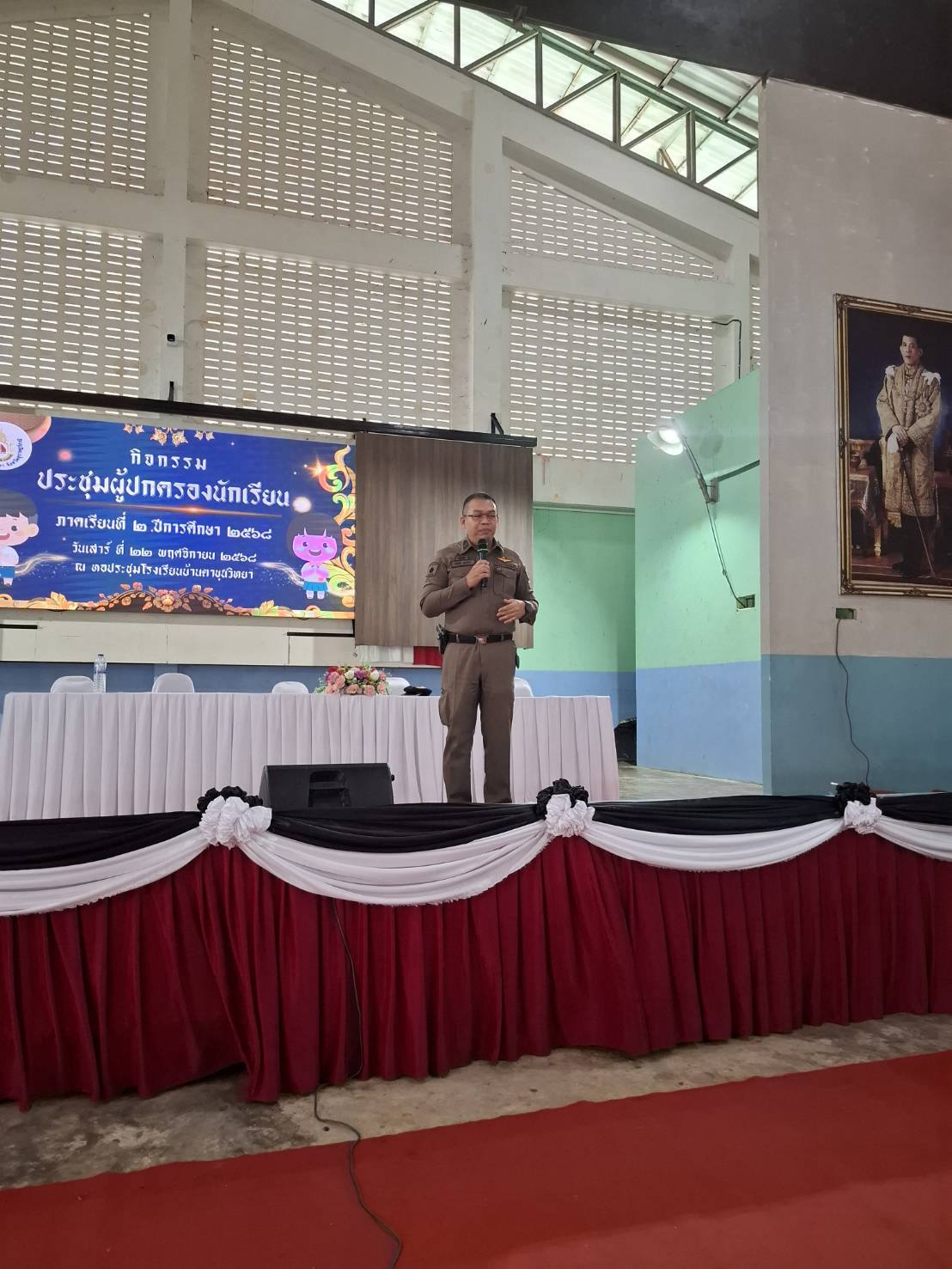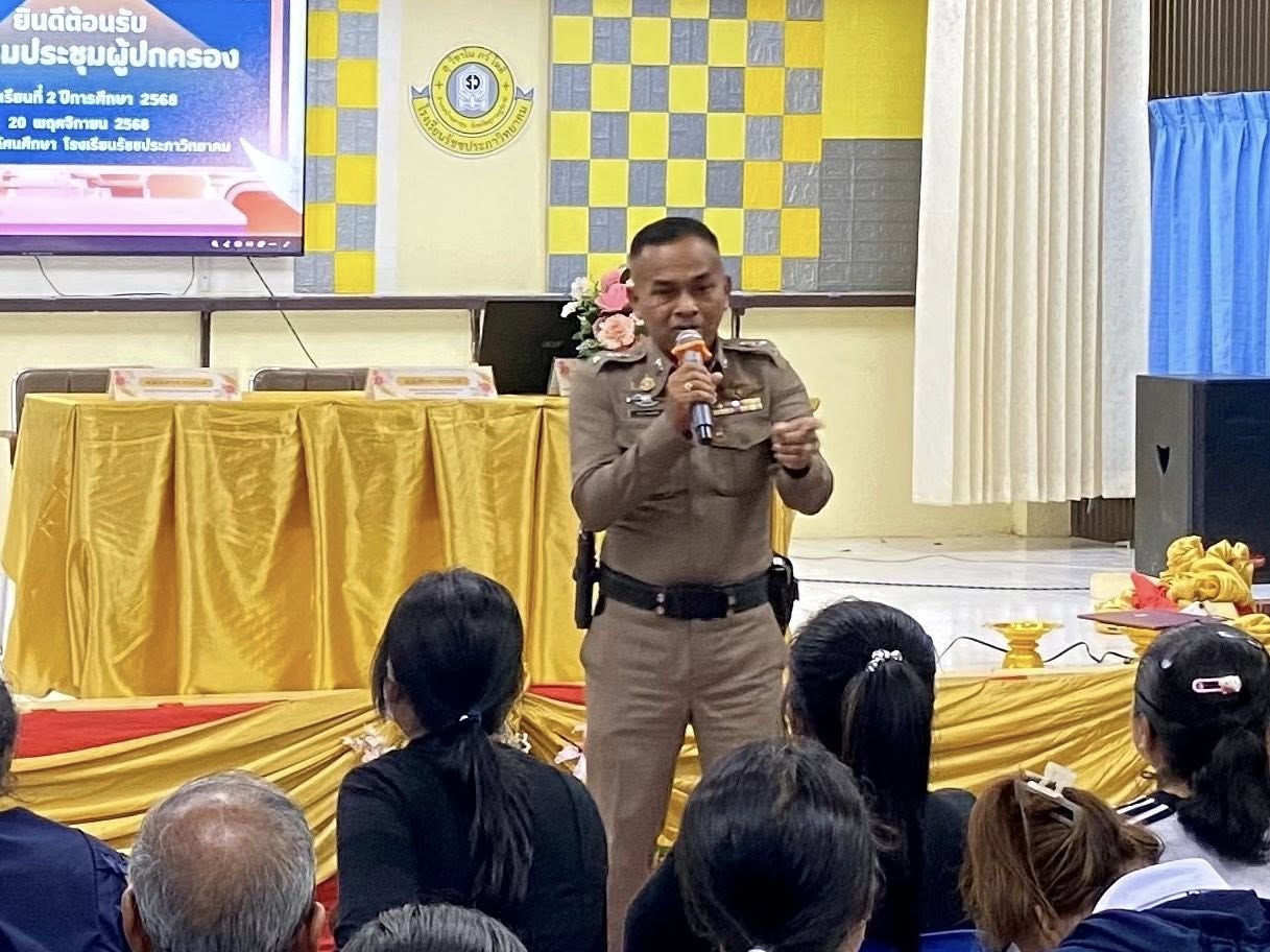 พ.ต.อ.กฤดินิธิ ทองทิพย์ รอง ผบก.ฯ รรท.ผกก. สภ.บ้านตาขุน ร่วมประชุมผู้ปกครองชัันเรียน ณ โรงเรียนบ้านตาขุนวิทยา ให้ความรู้เกี่ยวกับกฏหมายจราจร