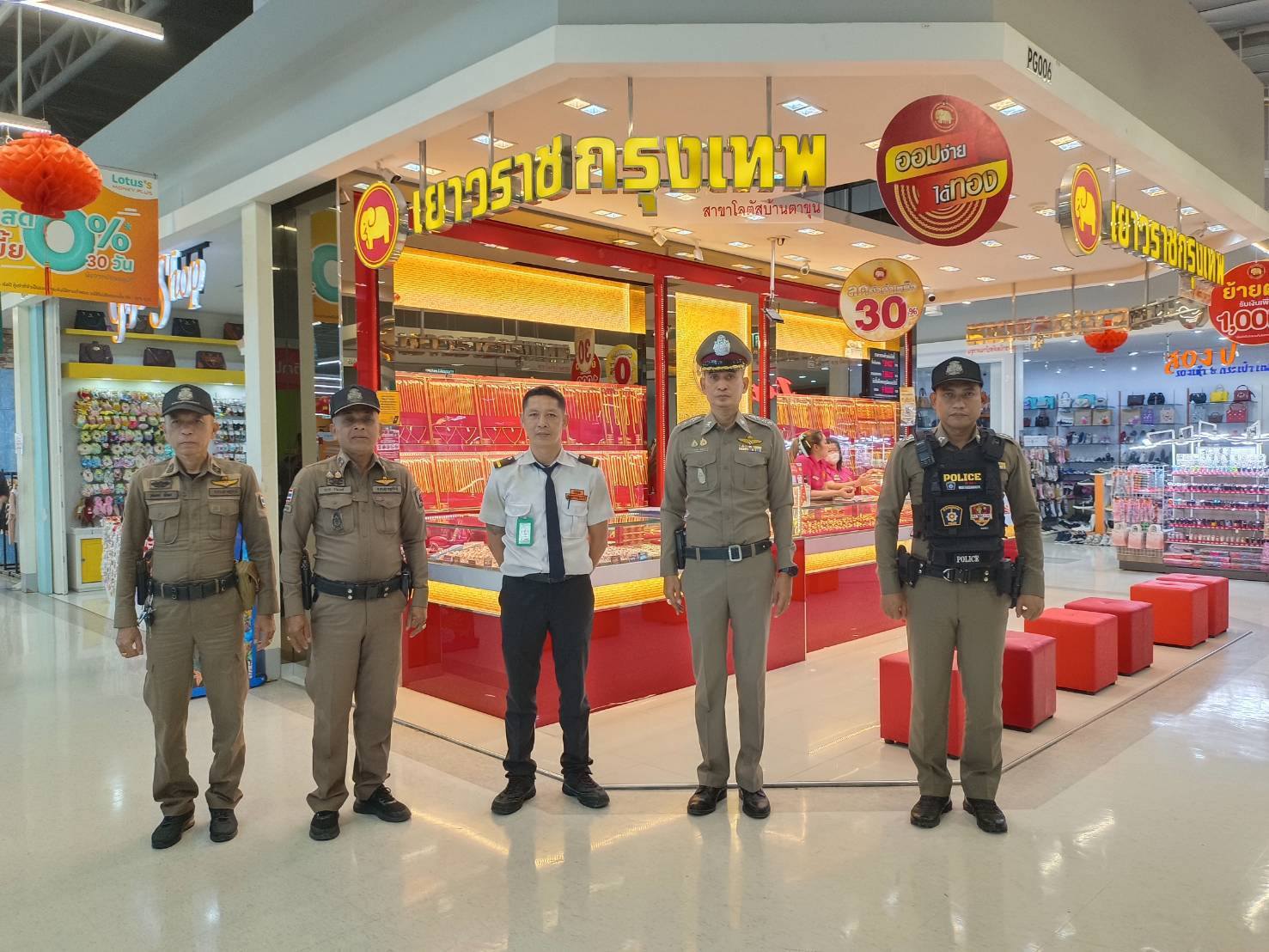 พ.ต.อ.อานุภาพ จันดิถวงค์ ผกก.สภ.บ้านตาขุน พ.ต.ท.ถาวร รามวงศ์ รอง ผกก.ป.ฯ พ.ต.ต.วุฒิดนัย พืชผล สวป.ฯ พร้อมชุดสายตรวจรถยนต์ ออกตรวจพื้นที่ร้านทองจุดเสี่ยงในพื้นที่รับผิดชอบ