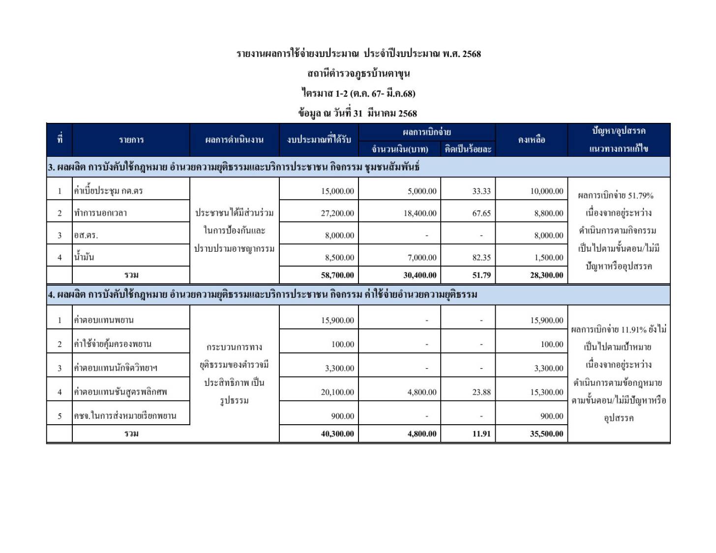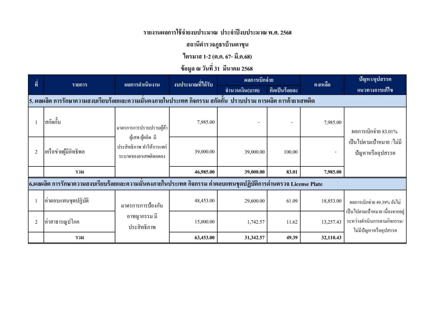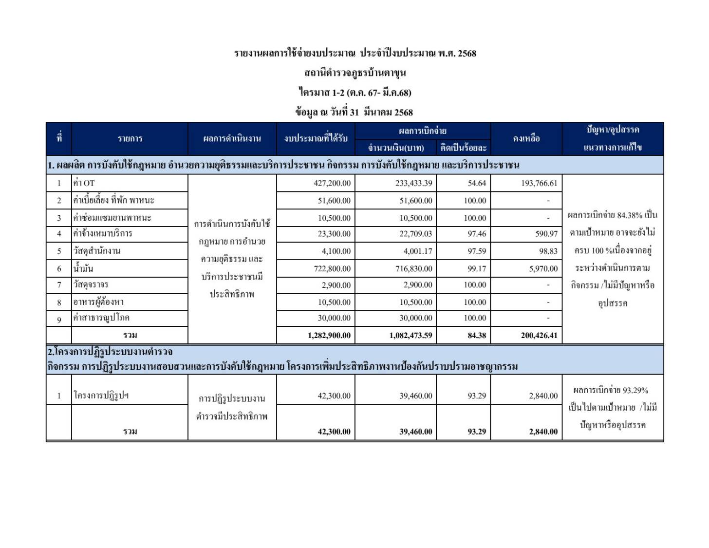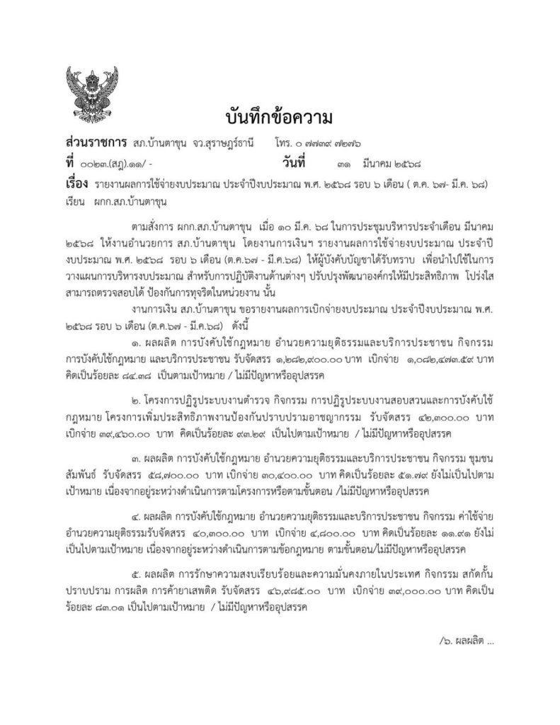 รายงานผลการใช้จ่ายงบประมาณประจำปีงบประมาณ พ.ศ.2568